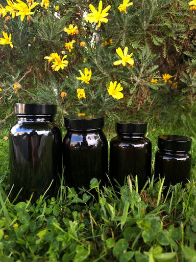 30 ml amber glass ointment jar with black, white or aluminium lid included. Amber glass jars also available in 15 ml, 60 ml and 120 ml. Jar specifc...