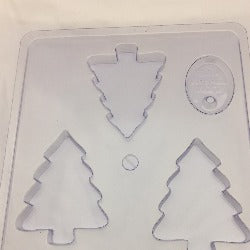 A clear 3 cavity mould to make a festive themed soap. From base to top of tree is 11.5cm and it is 9cm at its widest point. Approximately 1 cm dee...