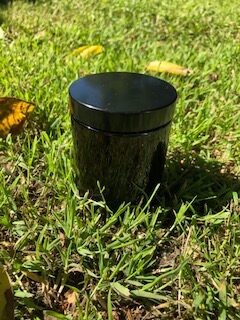 180 ml amber glass jar. Suitable for cosmetic products or candles. Price includes black lid.