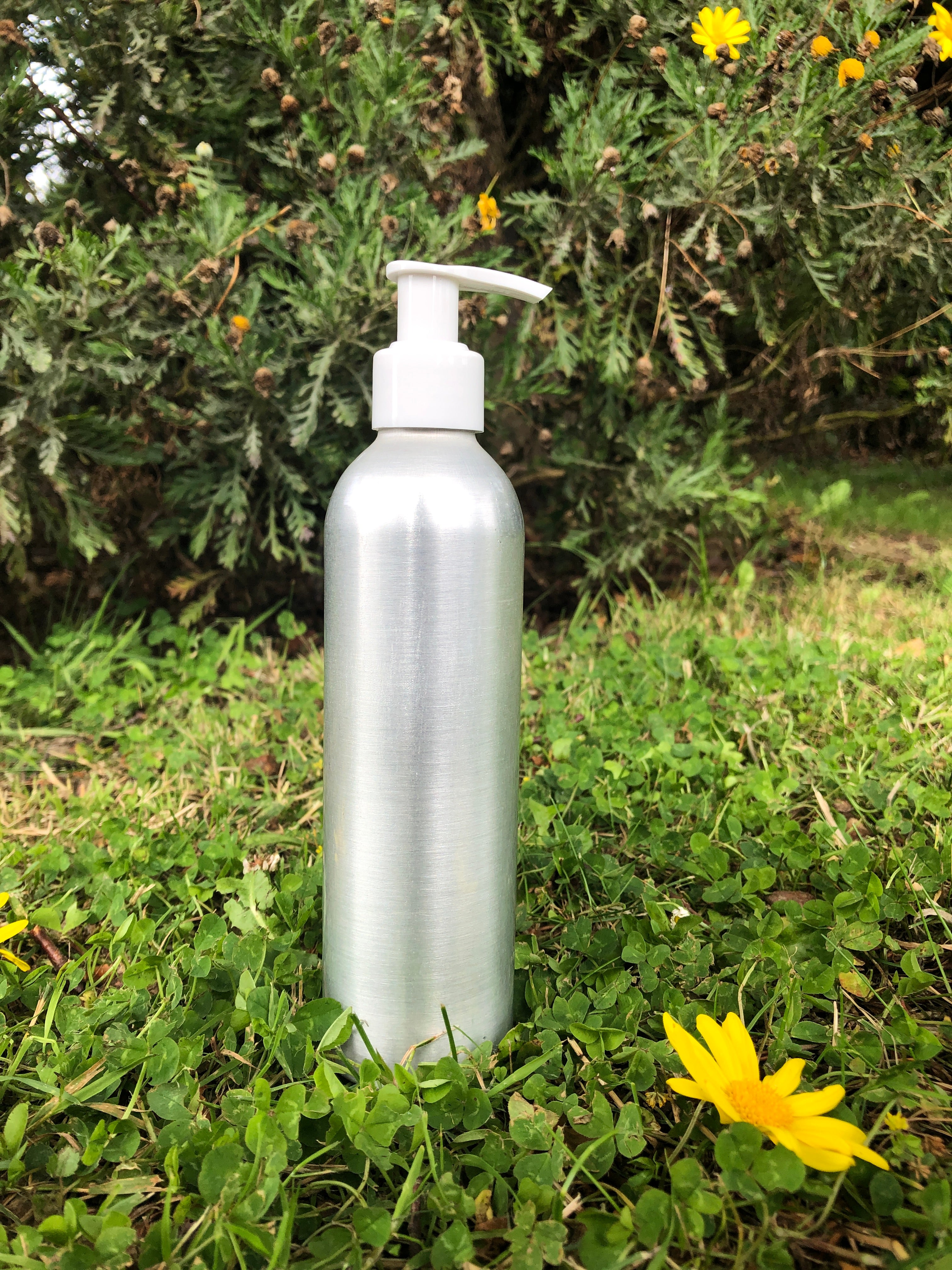 250ml aluminium bottle with choice of closures,- cap, pump, finger spray or trigger spray. Price includes VAT.