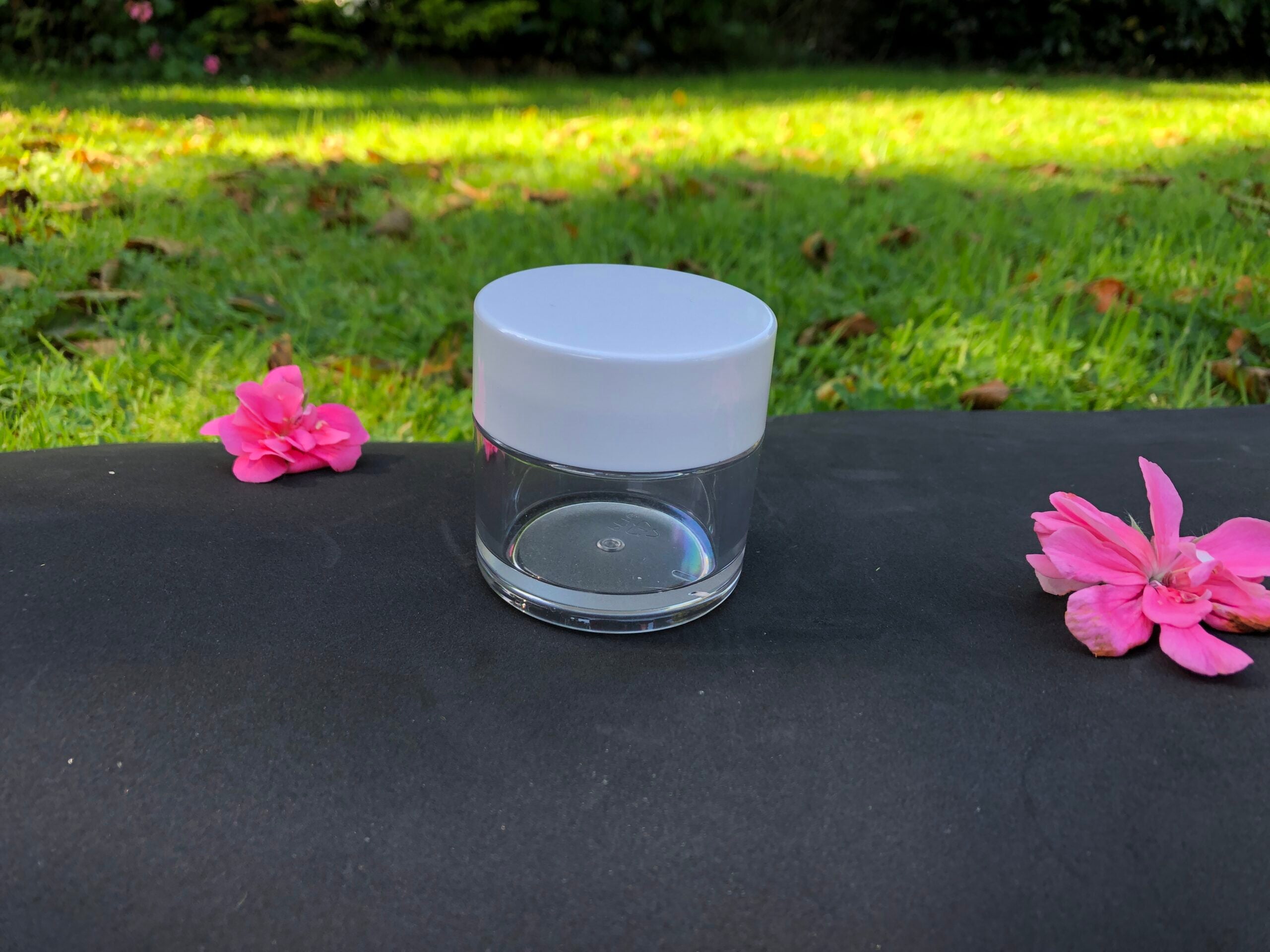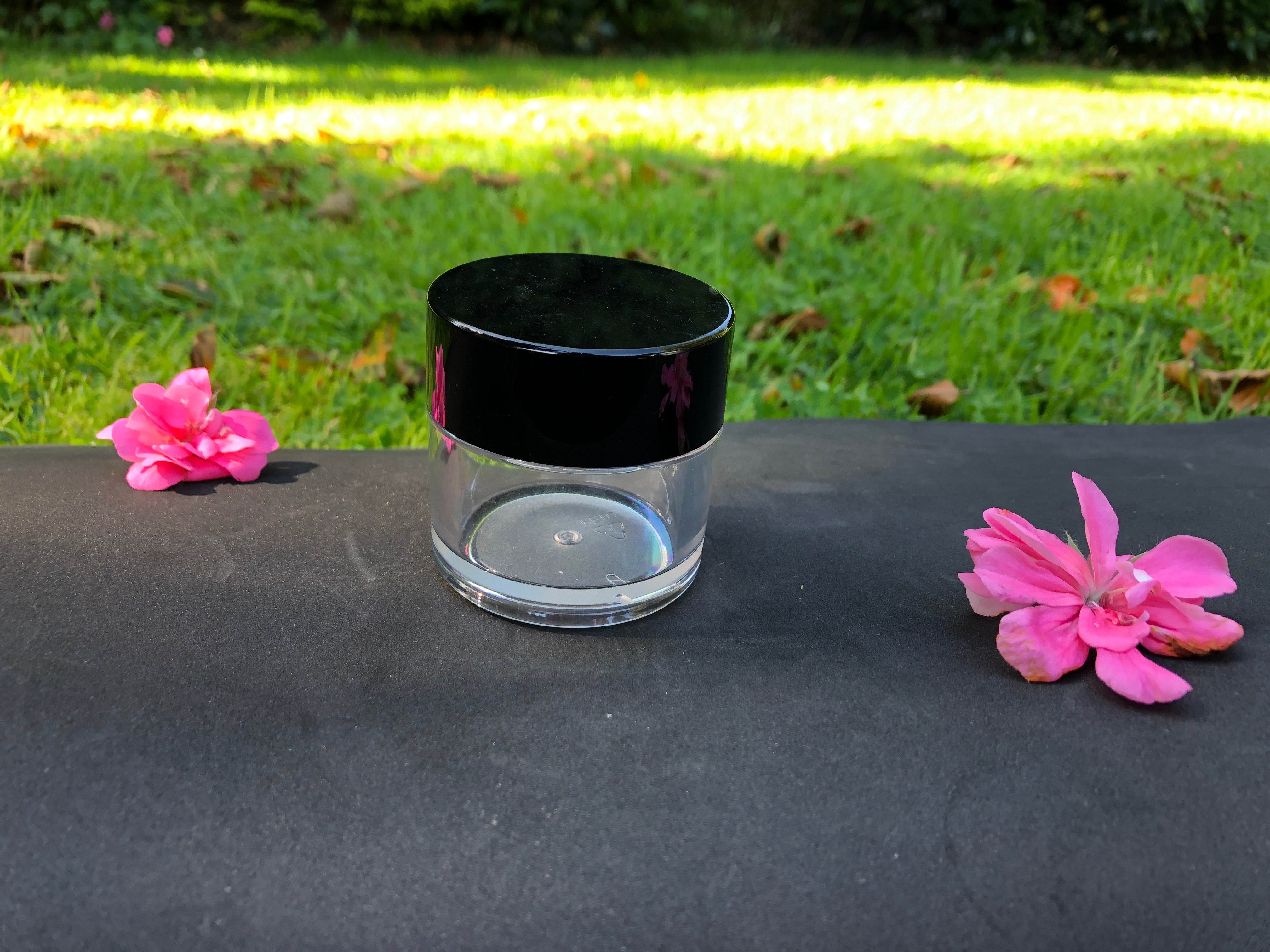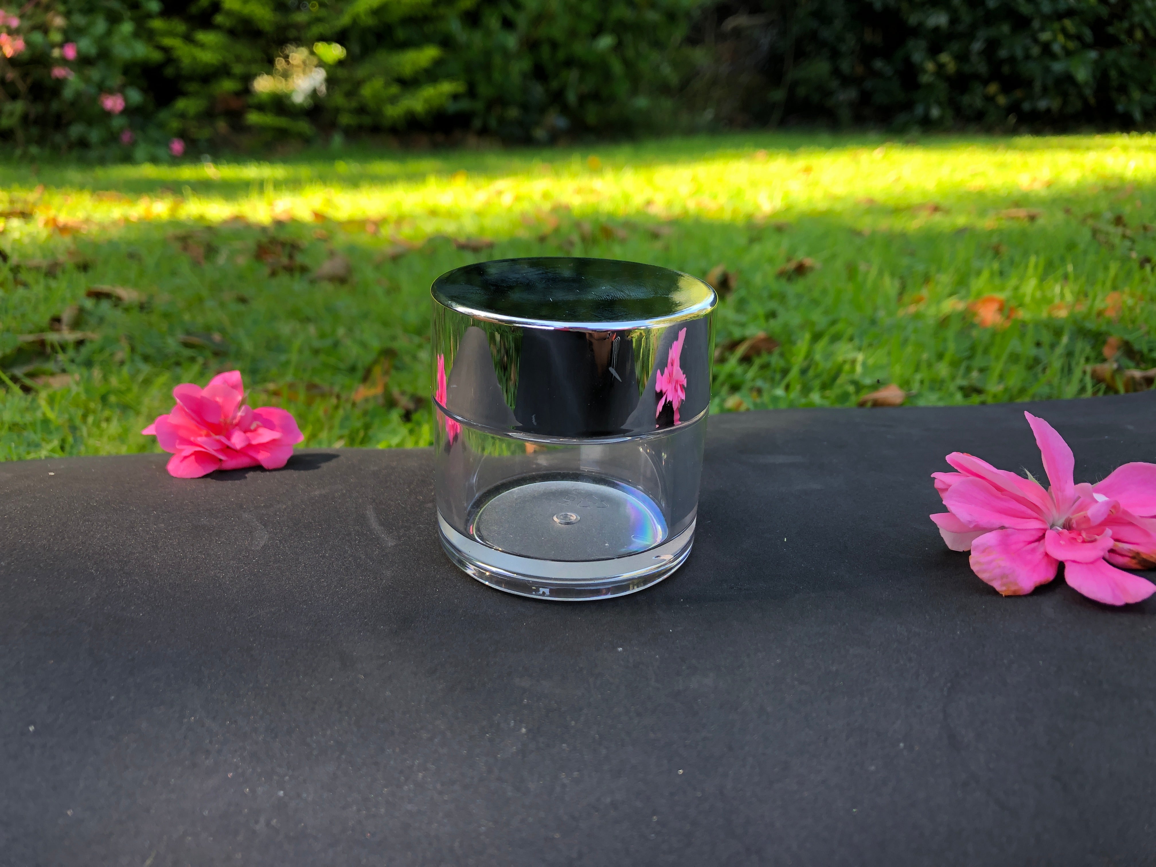 Diamond collection- A high-quality clear thickwalled PETG jar. Jar is 53mm in diameter. Available with gloss silver, black or white lid.