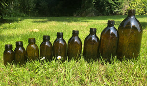 60 ml amber glass bottles with the medical round shape. Price includes VAT and a black cap. This particular bottle has a wide neck opening for easy pour.