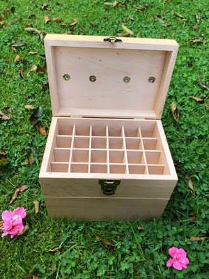 Our most popular box with students. Made of 100% alderwood this professional quality, 2 tier box holds 32 x 10ml Bottles& 2x100ml Bottles. Also has a sturdy handle for easy transport